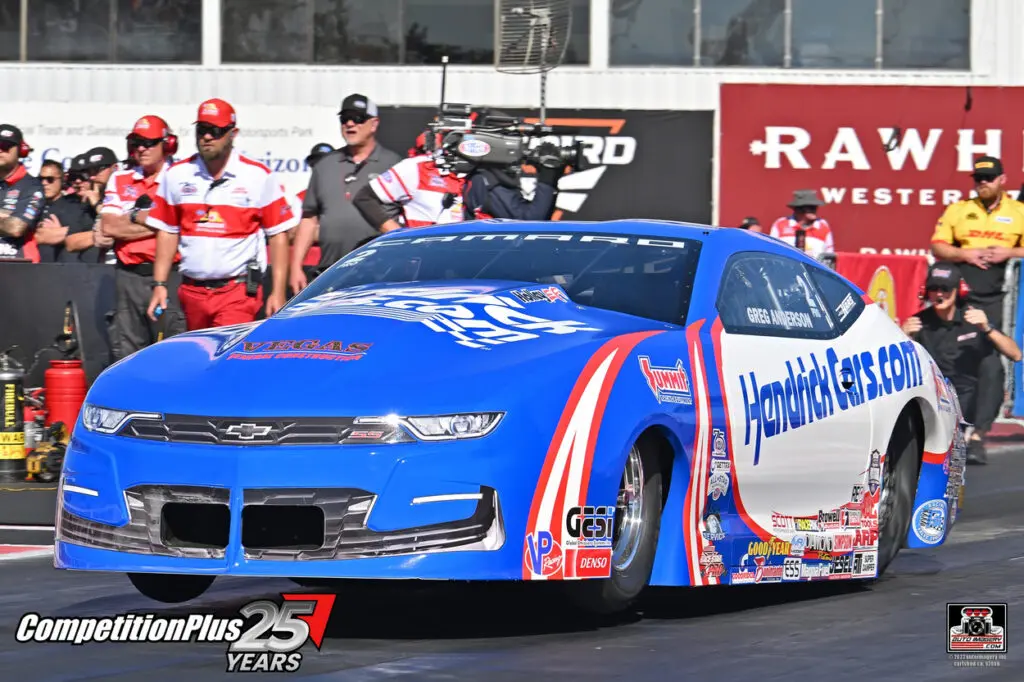 Greg Anderson claimed the Pro Stock pole for the 141st time in his career. The six-time champion improved Saturday with a 6.532-second pass at 208.26 mph in his HendrickCars.com Chevrolet Camaro.