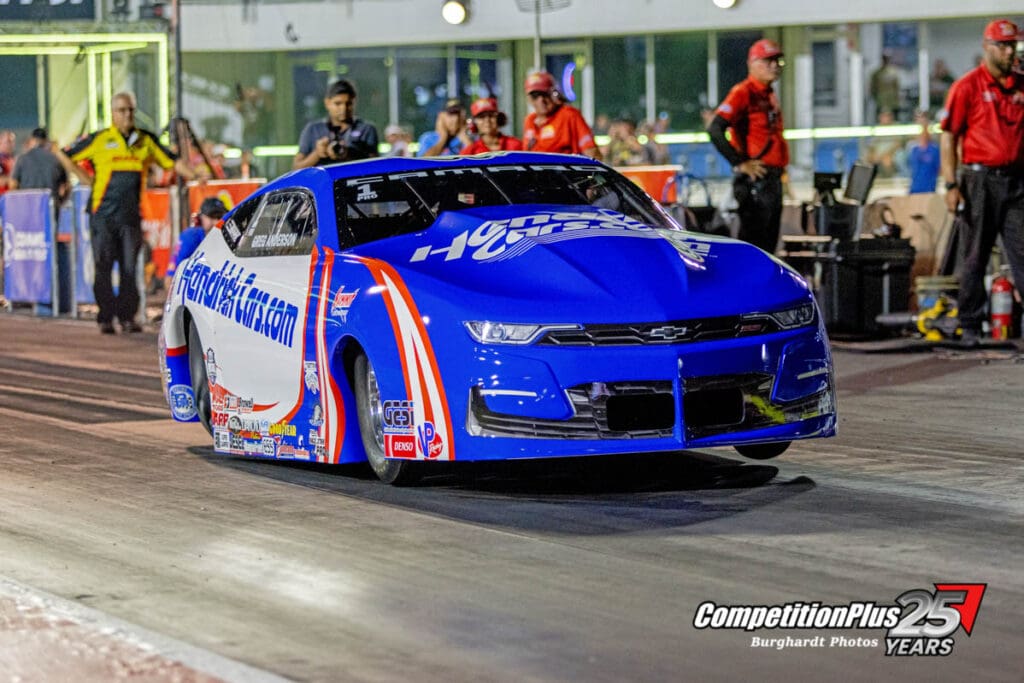 In Funny Car, reigning world champion Austin Prock swept both “JEGS Friday Night Live” and the “Battle for the Saddle,” cashing another $15,000 bonus after running 3.876 seconds at 336.07 mph in his Cornwell Tools Chevrolet SS.