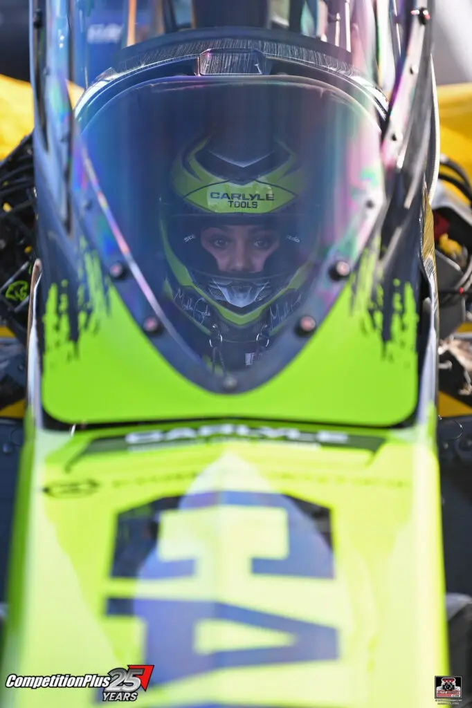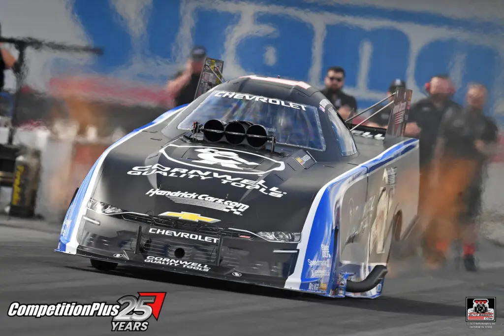 In Funny Car, Jordan Vandergriff led the category with a 3.866 at 331.69 mph. Earlier in the day, Vandergriff completed his transition from Top Fuel to Funny Car by finishing his licensing process with a 3.883 at 334.98 mph.