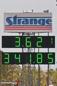Clay Millican turned in a 3.825 at 275.84 mph. Keith Murt closed out the Top Fuel group with a 3.957 at 318.17 mph.