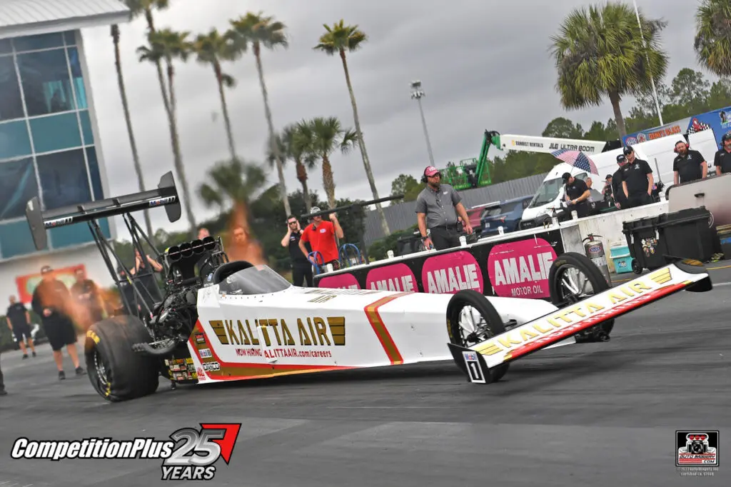 Langdon’s 3.621 placed him ahead of teammate Doug Kalitta, who posted a 3.668 at 339.45 mph. Justin Ashley followed with a 3.707 at 337.07 mph.