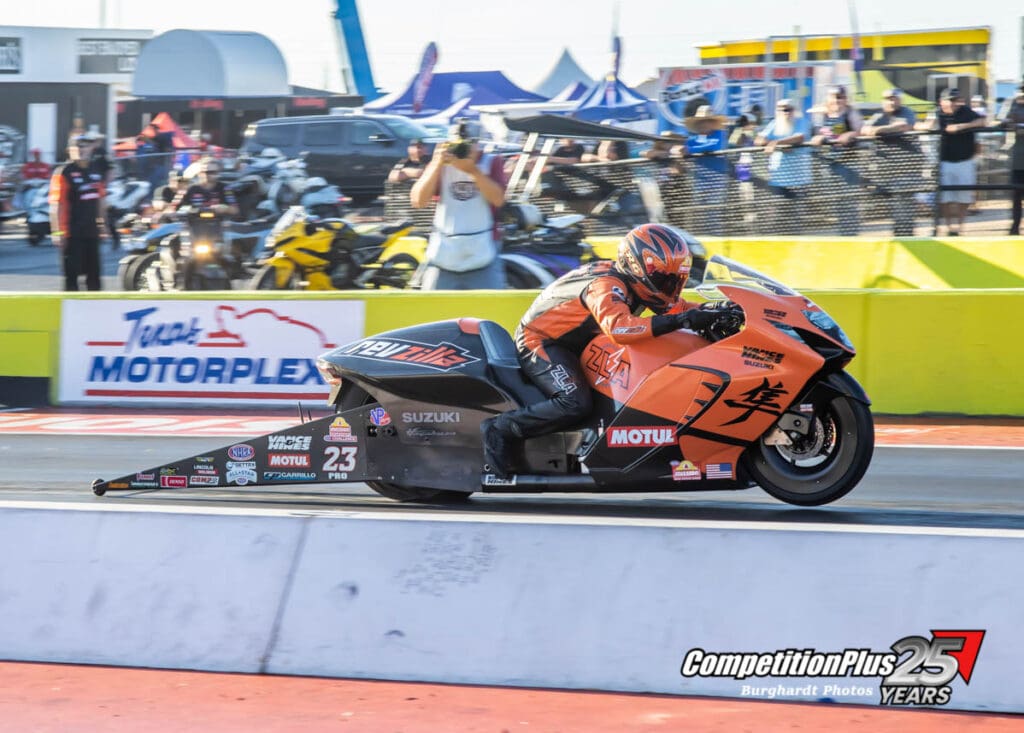 “I’m just trusting in my team,” Gadson said. “They’ve given me a great bike and all I have to do is pop the clutch and hit the button on time. I’ve been having a great time here at the Stampede of Speed in Dallas, and we’ve got four rounds to go on Sunday to win it.”