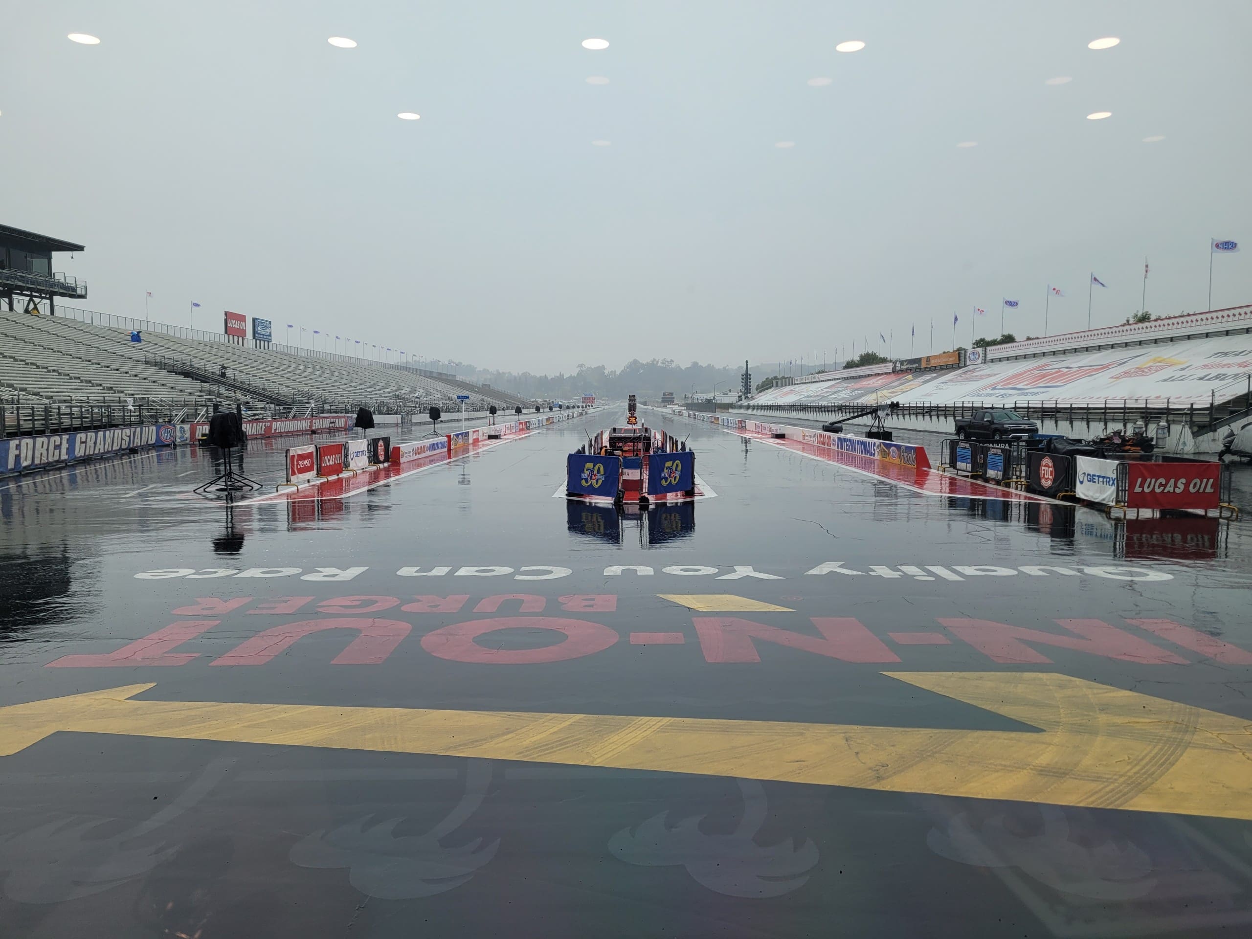 Persistent rain forced the postponement of Friday’s racing at the In-N-Out Burger NHRA Finals, as officials continue to battle the weekend forecast at In-N-Out Burger Pomona Dragstrip. NHRA announced that