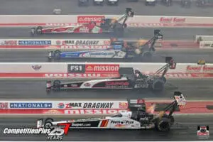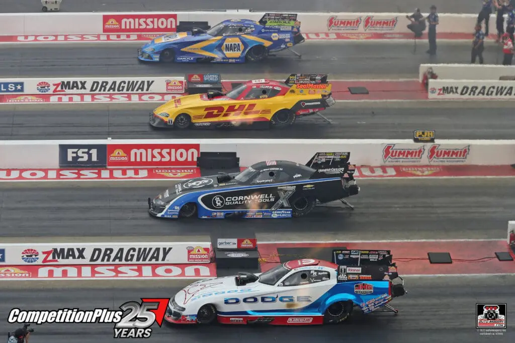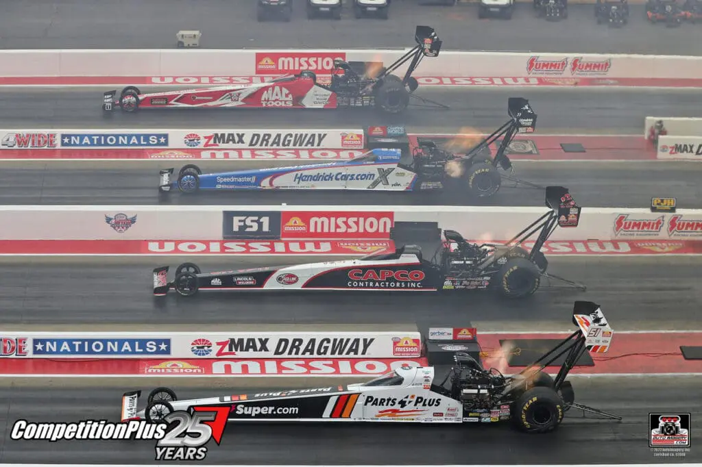 Millican had reached eight prior four-wide final rounds without closing the deal. He changed that Saturday, driving the Rick Ware Racing Parts Plus dragster to a 3.832 at 325.14 mph to win a Top Fuel quad that included Billy Torrence, Josh Hart, and points leader Doug Kalitta.