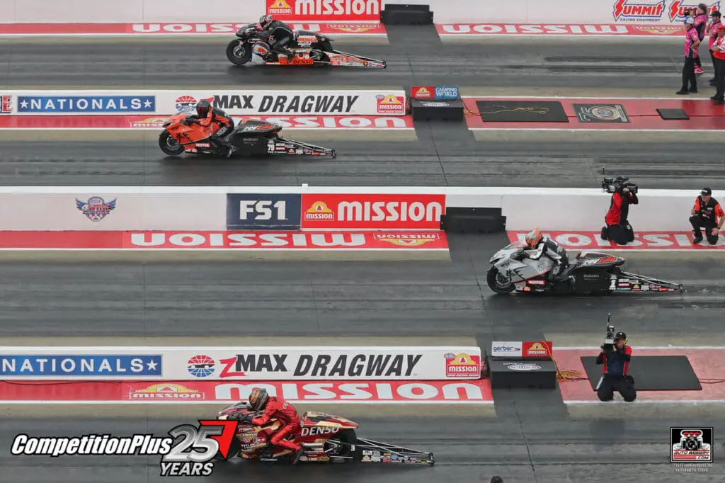 The two-time champion rode his Suzuki to a 6.759 at 199.20 and used a class-best .018 reaction time to defeat Matt Smith, Richard Gadson, and John Hall.