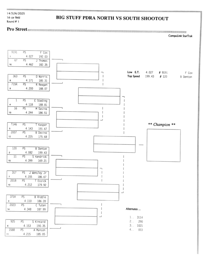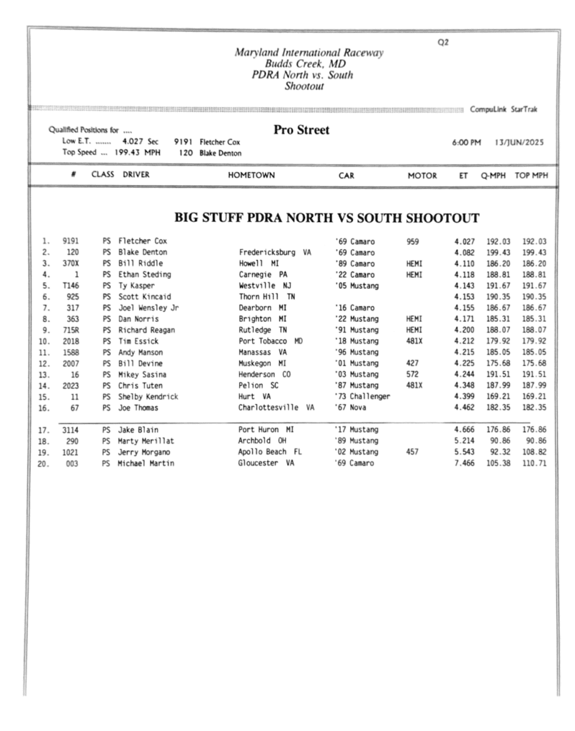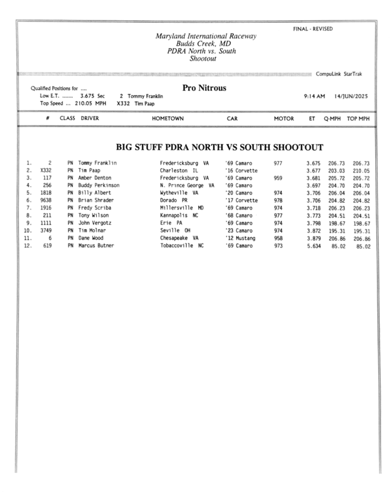 PDRA RESULTS – 2025 NORTH-SOUTH SHOOTOUT – BUDDS CREEK, MD.