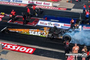 Ashley secured his first win at Norwalk and second in as many races with a holeshot triumph over Clay Millican. Ashley ran a 3.931, 317.34, to Millican’s quicker 3.922, aided by a .027-second reaction time in his Scag Power Equipment dragster.