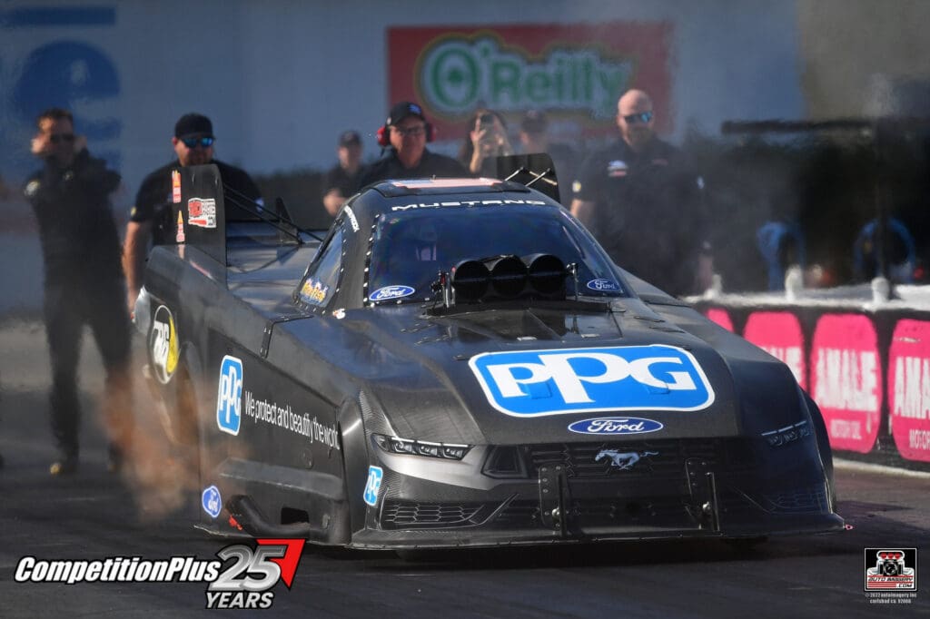 The Mustang was on pace for an .84-second elapsed time before Prock clicked it off early at 660 feet. Even with the conservative decision, the car ran to an .87 at the stripe, marking the quickest Funny Car effort of the day and signaling that the rebuilt combination is trending upward.