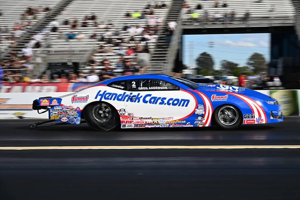 In Pro Stock, Anderson once again asserted control at a facility where he has built much of his legacy. His 6.544 at 209.39 in the HendrickCars.com Chevrolet Camaro led both sessions and placed him atop the provisional order.