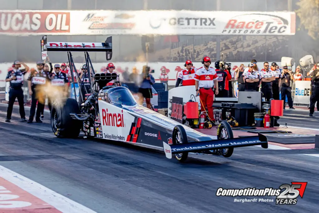 Pruett’s outlook reflects expectations across the Top Fuel field that conditions on Saturday could reset the order. Cooler temperatures are expected to improve performance and challenge the current standings.