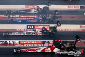 Austin Prock qualified second in Funny Car with a run of 3.844 seconds at 336.49 mph, while Daniel Wilkerson’s career-best run of 3.855 seconds put him third.