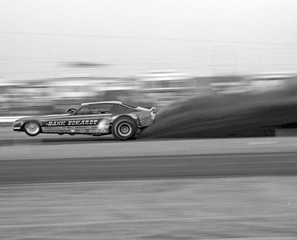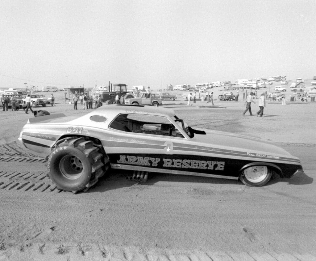 Rear-engine Funny Cars lived on in sand drag racing. Hank Eckardt, Ralph Pearson, and Butch Blair all campaigned rear-engined entries, including Blair’s Vega and later his “Jeepster.” Some eventually returned to asphalt in Top Fuel.