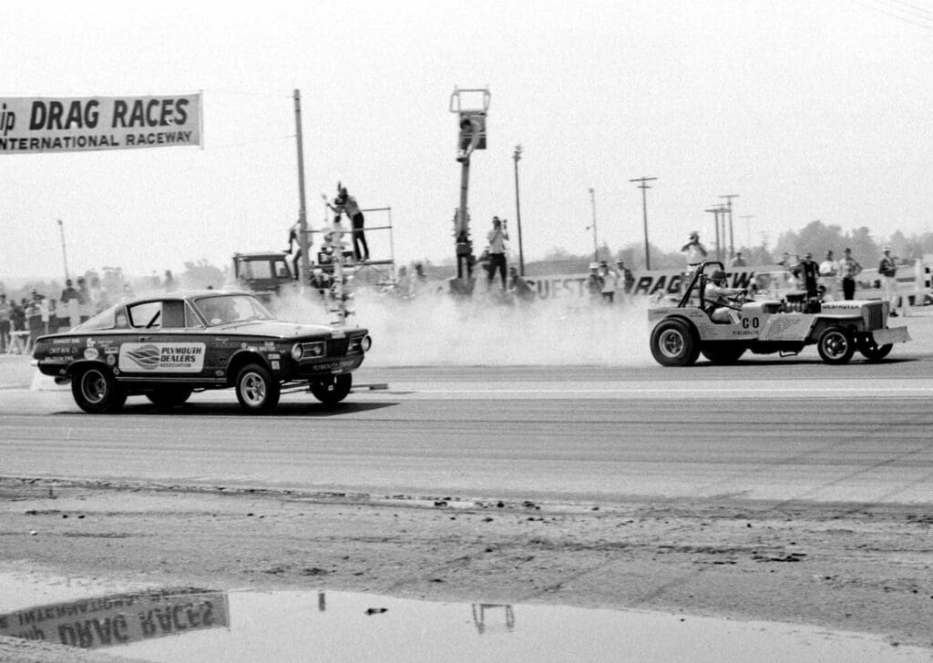 “Fearless” Fred Goeske’s rear-engine Hemi-Cuda at Pomona and Riverside. This was the second version of the car, after Tom “Mongoose” McEwen’s original flew at Lions in 1966. Goeske ran it only during the 1967 season before switching to a conventional layout.