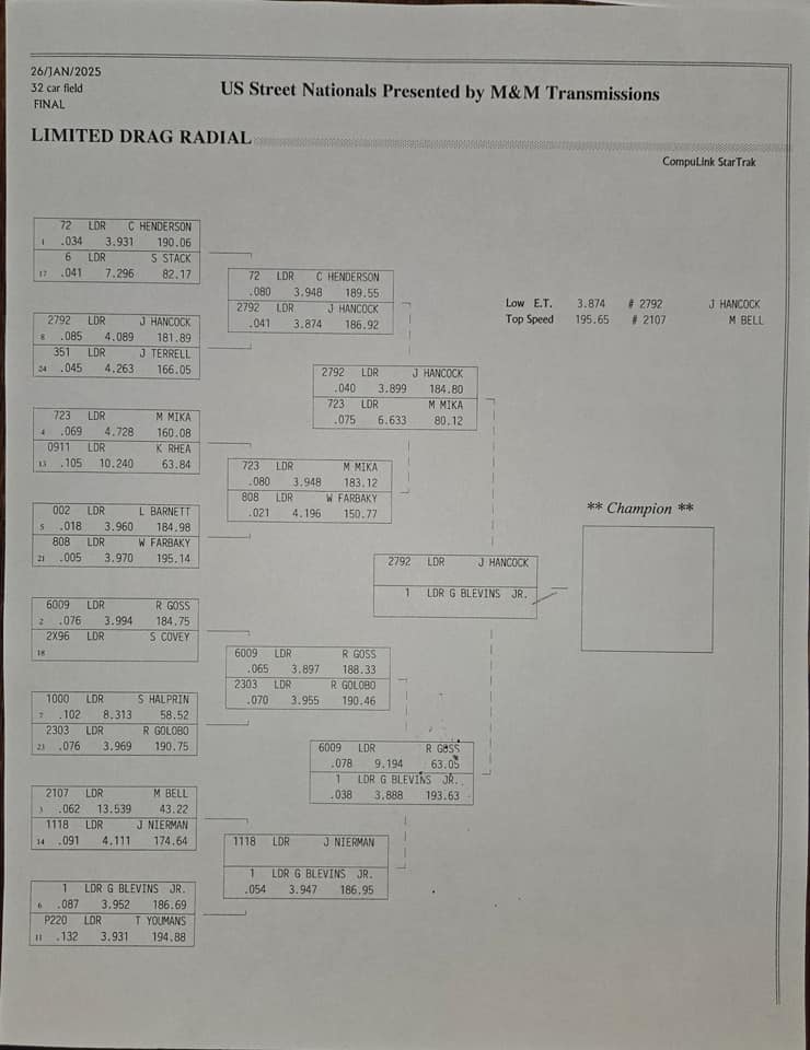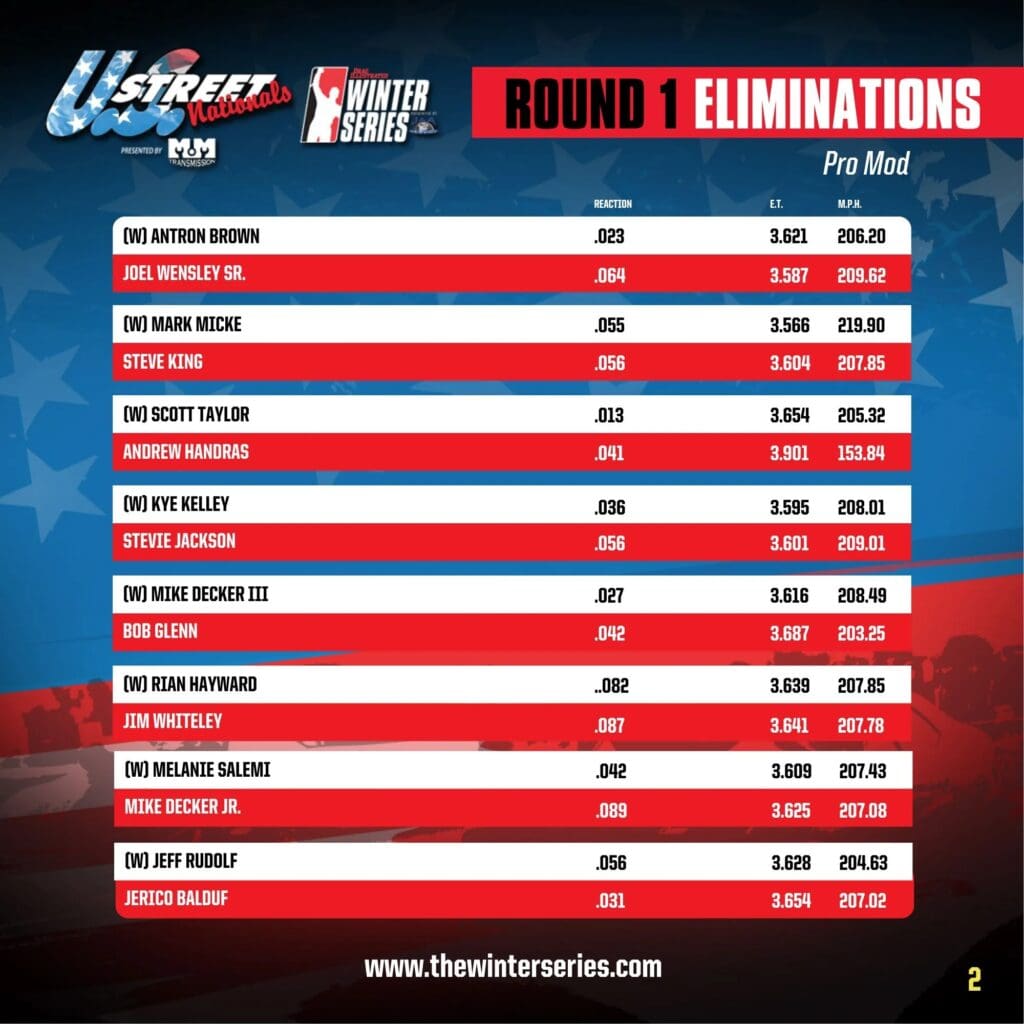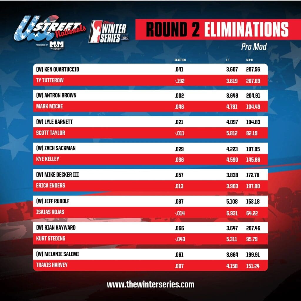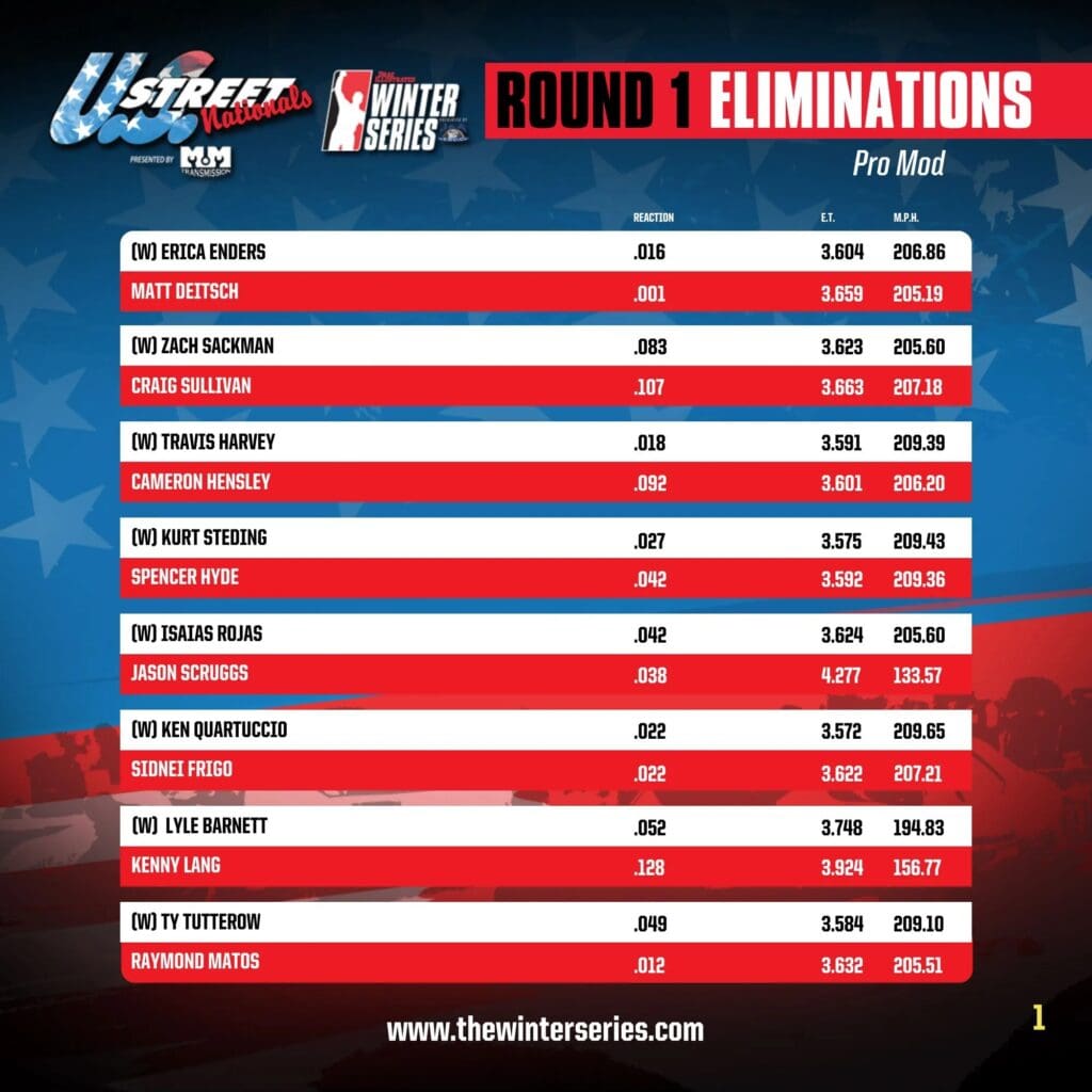 ROUND-BY-ROUND ELIMINATION RESULTS FROM U.S. STREET NATIONALS