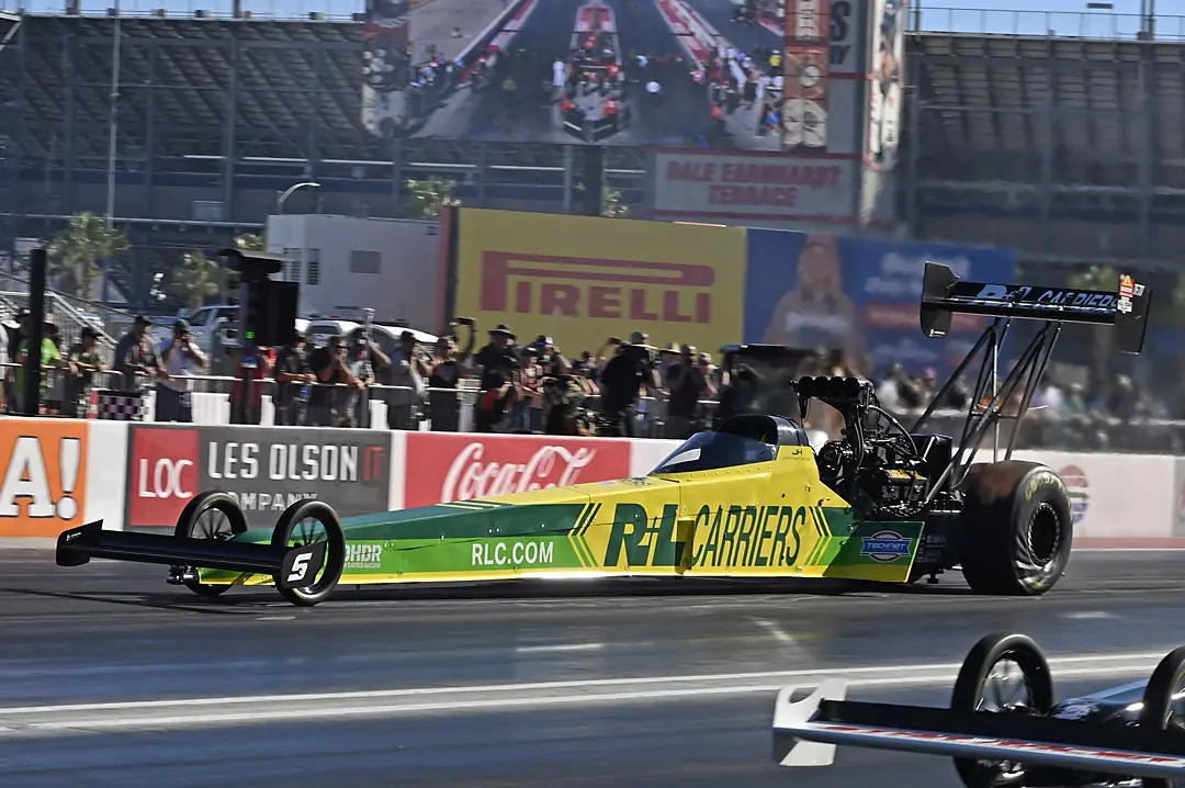 ROUND ONE — Chad Green, Ford Mustang, 3.960, 325.61 def. Dave Richards, Mustang, 5.811, 130.12; Paul Lee, Dodge Charger, 3.842, 332.51 def. Bobby Bode, Toyota GR Supra, 3.883, 330.47; Blake Alexander, Charger, 4.236, 222.58 def. Austin Prock, Chevy Camaro, 4.415, 300.13; Spencer Hyde, Mustang, 3.886, 322.19 def. Ron Capps, GR Supra, 4.989, 162.82; Jack Beckman, Camaro, 3.847, 327.19 def. Jeff Diehl, Toyota Camry, 4.092, 260.31; Cruz Pedregon, Charger, 3.890, 324.44 def. Steven Densham, Mustang, 10.437, 91.66; Daniel Wilkerson, Mustang, 4.165, 234.00 def. J.R. Todd, GR Supra, 4.621, 253.18; Matt Hagan, Charger, 3.884, 324.59 def. Alexis DeJoria, Charger, 9.685, 86.38;