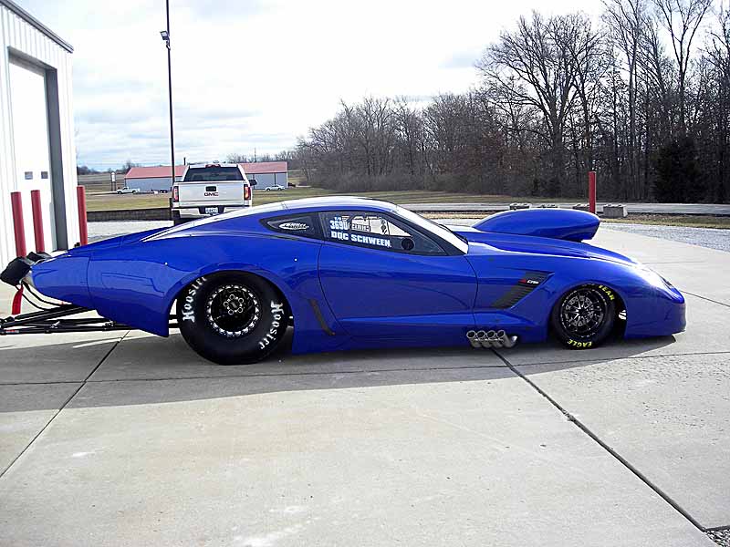 Here’s a first look at Gary Schween’s new Corvette rolling out of the Jerry Bickel Race Cars shop. We hear that the car is destined for either Pro Nitrous or Top Sportsman, which will be supplied by Charlie BuckBuck power.