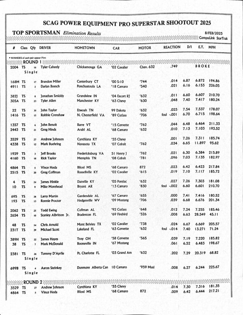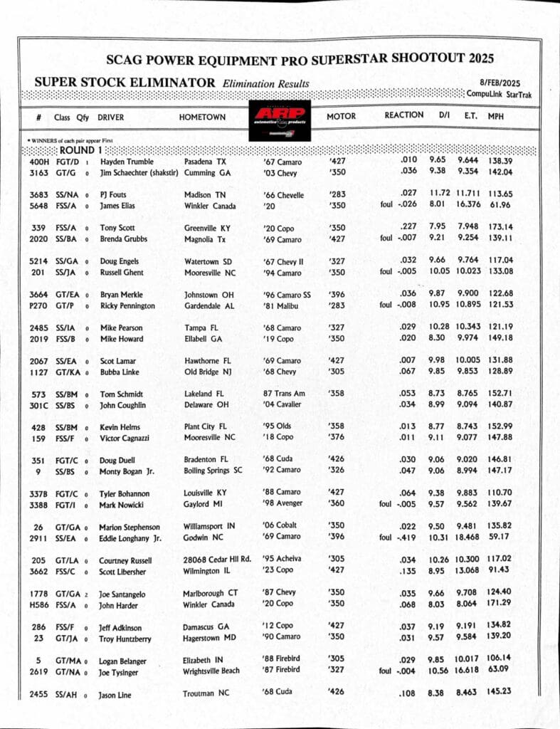 SPORTSMAN RESULTS FROM PRO SUPERSTAR SHOOTOUT