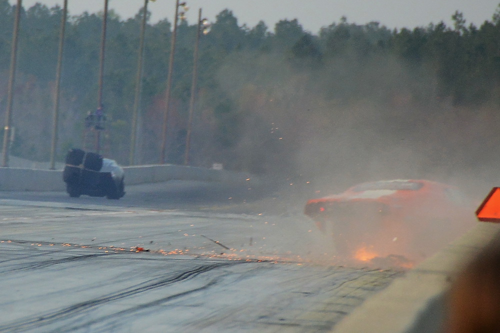 “The fuel tank is up there (at the front of the car), so that’s probably what started the fire,” Sullivan suggested. “Once it hit the wall I just turned into it because I really wasn’t sure at that time where Norman was on the track.”