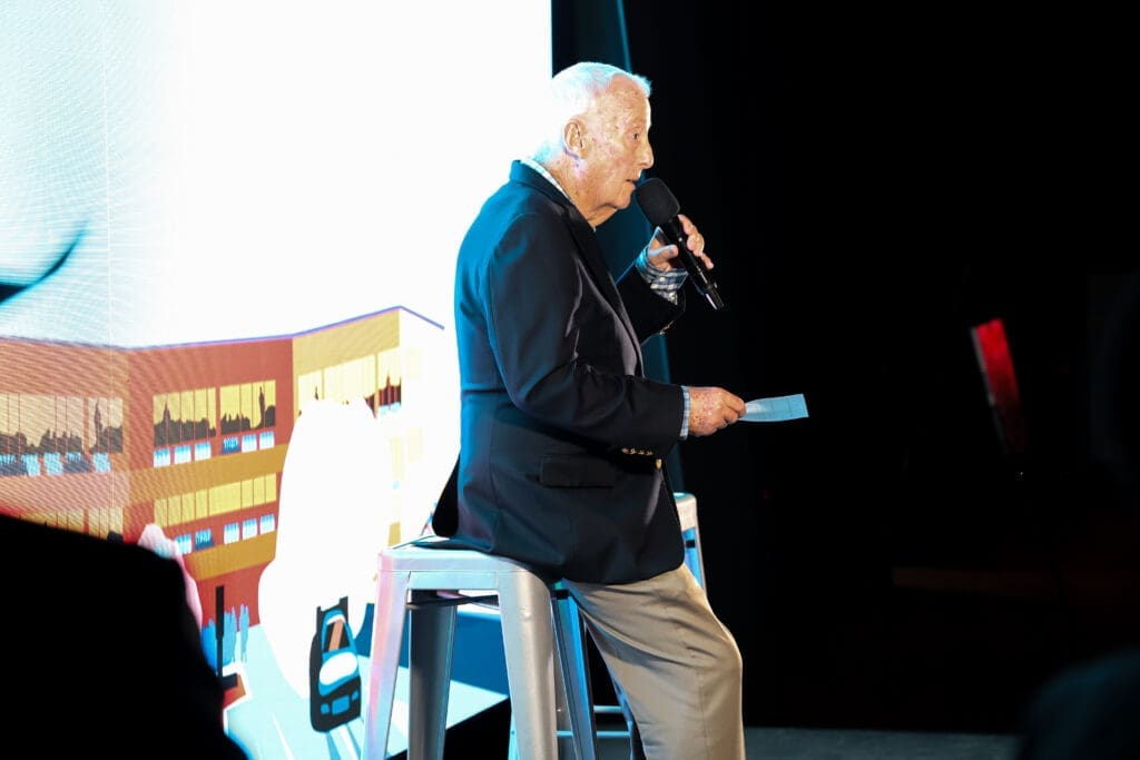“Close your eyes and think back to the first time you drove down Highway 287,” he said from the Champions Dinner podium. “You came to a cluster of beer stores at Reagor Springs, then rounded that big curve… and there it was. This gigantic structure rising out of the corn fields.”