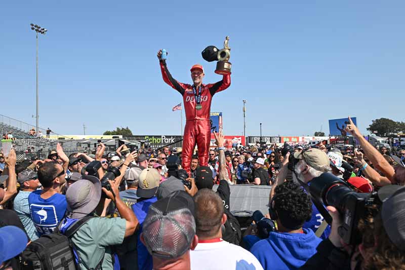“He was also a hero of mine when he ran NASCAR and IndyCar. I know how good of a driver he is. He understands the science, so as soon as he showed up, I knew what he could do. I did tell him to come on over, but there are a lot of sharks in the water here. His time is coming, and it won’t be one win, it will be a lot of them, but this is a good win for us. My team stays poised and they were incredible all weekend. I’m super-pumped for all of them. We went down the track every single lap, and that was an awesome, awesome job to get a win like this.”