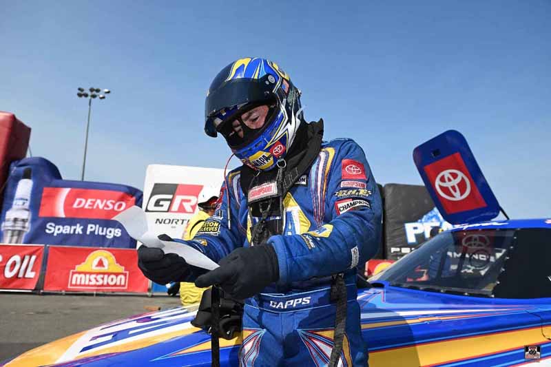 5B – CAPPS BOUNCES BACK – One week after blowing his No. 1 NAPA Toyota Funny Car to smithereens, two-time NHRA champ Ron Capps was back on the battlefield with a weapon that could have used a few updates. In a rematch of Capps’ last final-round appearance two races ago, Capps left the starting line together with Bob Tasca III but drove into tire smoke. Capps moved up one spot to fifth in the Funny Car points standings with just two regular-season races left before the Countdown to the Championship.