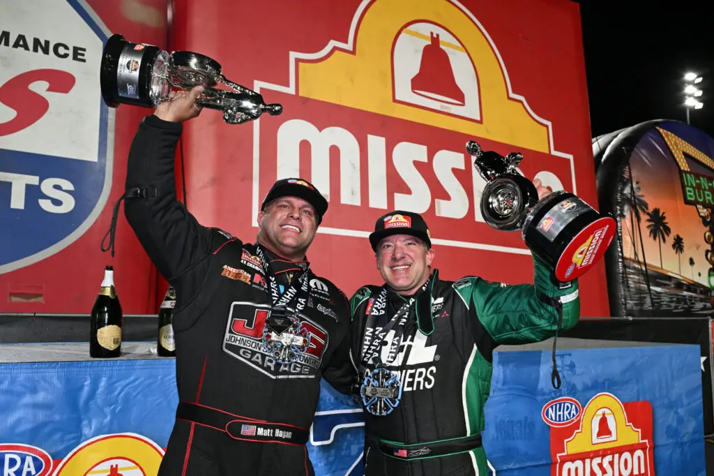 Hagan used his 99th final-round appearance to record his first victory among the season’s three completed races, his 56th overall, his fifth at the Winternationals and eighth at In-N-Out Burger Pomona Dragstrip. The victory improved his cumulative elimination-round record to 586-318 – just 14 round-wins away from reaching the 600 plateau.