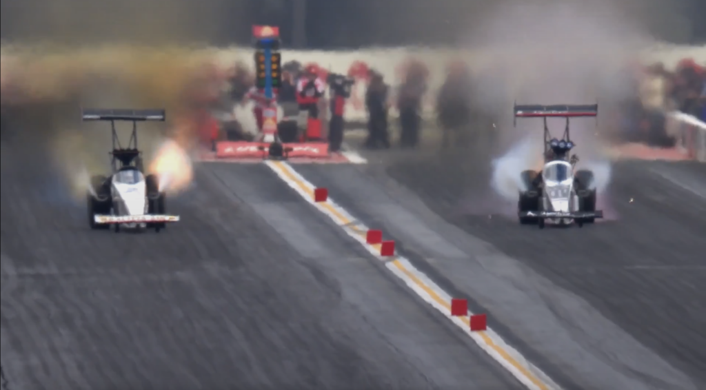 But what made these two match-ups amazing were several stats. Kalitta and Ashley had identical elapsed times (3.705 seconds). But on that run, Kalitta reset the track speed record he had established in the first round with a 340.56 mph. It was the first Top Fuel class 340-mph clocking on this racetrack – and he lost by nine-thousandths of a second because Ashley cut his third straight .025 light. (Stewart, his final-round opponent, was massively impressed with Ashley’s reaction times. “I don’t even know if he’s mortal,” Stewart said.)