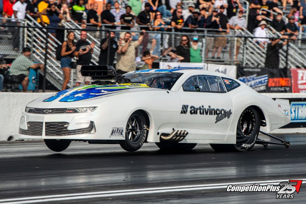 4 – FRIGO’S RUN TO THE FINAL – Sidnei Frigo delivered one of the strongest elimination-day performances of the Snowbird Outlaw Nationals, driving his screw-blown Artivinco Racing ’23 Camaro from the No. 23 qualifying spot to the Pro Modified final. Frigo qualified with a 3.607-second pass at 210.08 mph before beginning a steady advance through a ladder stacked with past champions.