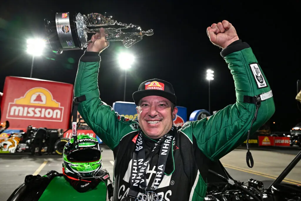 “And to win for R&L Carriers and everybody at Elite Motorsports, they showed me the video in victory lane from the starting line when it was over. There were so many people from the Pro Stock team. That’s the stuff that means so much. The way Richard and I met was literally before I bought the trucks and trailers from Don Schumacher and started TSR [Tony Stewart Racing]. But from that day, Richard and I had a special connection with each other and a bond. To sit here and race together and be able to get him his first win in the nitro class is just a feeling that you can’t express. There are really no words that really tell the story of what it means. For his whole group and all those people and … for everybody, the day that they had and to sit there and every one of those employees from Elite were on that starting line when we won that race and to see that video, it, that means more than being at the top end to me. It’s just hard to put it all in words. The part I’m scared about is Richard’s going to think this shit’s easy. And it’s not. It’s definitely not.”