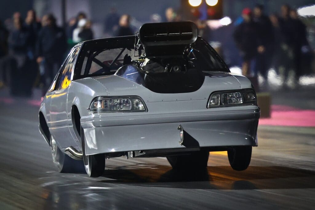 Richard Reagan stole the top spot — and possibly the record — with a 3.854 at 199.29 in his screw-blown ’90 Mustang. The pass was one hundredth quicker than the existing record.