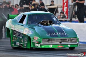 Fuel Altered provisional No. 1 qualifier Pete Peterson was the closest to the 6.00 class index with a 6.121, but it came at a steep price. He exploded an engine, creating significant damage to question whether his No. 1 qualifying effort will be defended or he will have to throw in the towel.