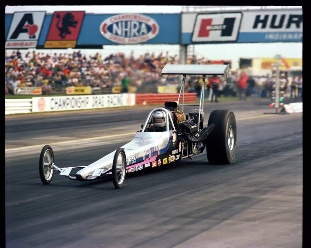 After beating Capp in the semifinals, she climbed from her car to hear Garlits, who had just beaten Pittsburgh veteran Ted Wolf in the other semifinal matchup, exclaim, as only he could have, “Oh my God, there’s a wooooooooman in the final at Indy!”