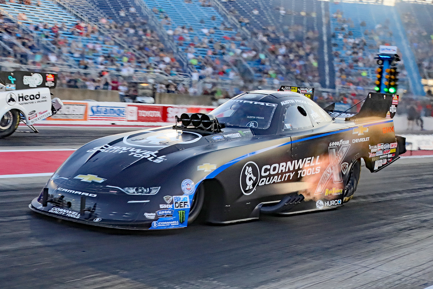 “It definitely feels good, especially after Charlotte where we weren’t happy,” Prock said. “We didn’t race smart in Charlotte, and it cost us. Here, we made two great runs. I’m getting more seat time and we changed a few components on the car as far as steering. This is just my sixth race, but I’d say I’m more comfortable in the Funny Car. From day one, I’ve been saying I’m oddly comfortable in there. Don’t get me wrong. This thing is a beast, and anyone who tells you otherwise is crazy, but I feel really good right now.”